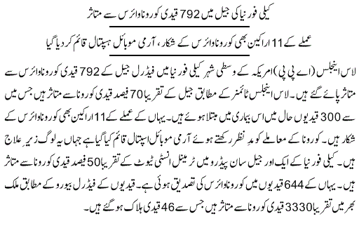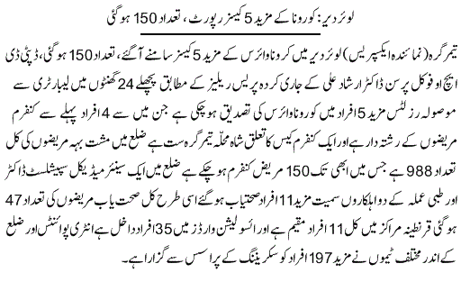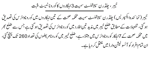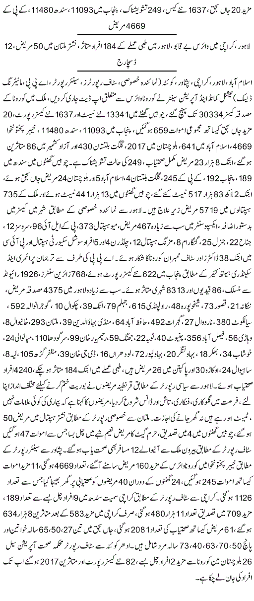 پاکستان میں 24 گھنٹوں میں28 اموات ، کورونا متاثرین کی تعداد 30 ہزار 941 تک جا پہنچی ، دنیا بھر میں ہلاکتیں 2 لاکھ 83 ہزار سے تجاوز کر گئیں ::: گورنر پنجاب کی اہلیہ نے ”سرور فاؤنڈیشن“ کے ذریعے اب تک کتنے ہزار خاندانوں میں راشن سمیت دیگر اشیا تقسیم کیں ؟ نئی مثال قائم کر دی