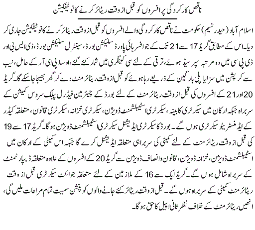 آرکے عہدے سے فارغ کردیا اور گریڈ 22 کی افسر نوشین جاوید امجد کو چیئرپرسن