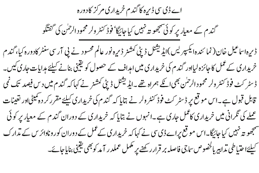 ضلع میں گندم کی خریداری کے لئے17مراکز قائم کر دیئے گئے ہیں۔ڈاکٹر اختر