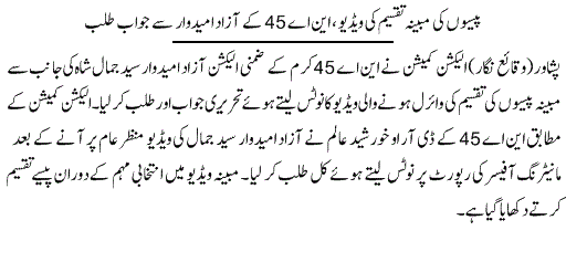 جسٹس مظاہرنقوی نے استفسار کیاکہ الیکشن کے حوالے سے آراونے رپورٹ کب دی؟ریٹرننگ افسرکمیشن کے سامنے کب پیش ہوئے؟وکیل پی ٹی آئی نے کہاکہ 25 فروری کومختصرحکم نامہ جاری کیاگیا،جسٹس عمر عطابندیال نے کہاکہ تفصیلی فیصلہ کب آیا ؟وکیل پی ٹی آئی نے کہاکہ مختصرحکم نامہ جاری کرنے کااختیارصرف اعلیٰ عدلیہ کاہے،عدالت نے کہاکہ کیاالیکشن کمیشن نے آراورپورٹ کے علاوہ بھی انکوائری کرائی؟وکیل درخواست گزار نے کہاکہ الیکشن کمیشن نے دوبارہ کوئی انکوائری نہیں کرائی۔