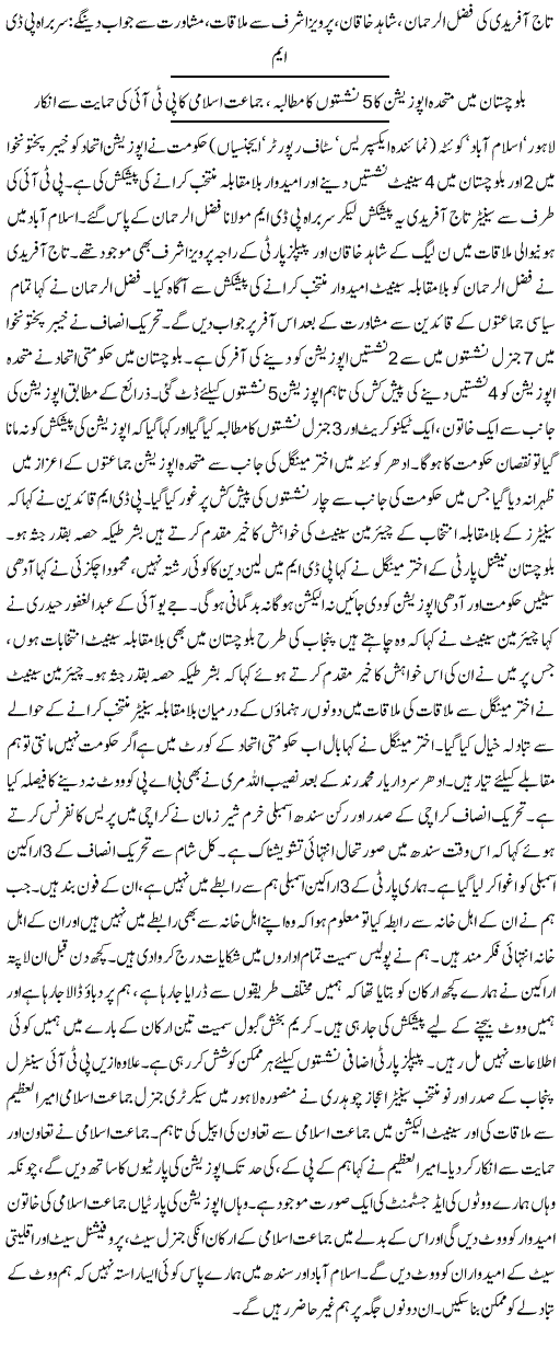 اسلام آباد میں میڈیا سے گفتگو کرتے ہوئے انکا کہنا تھا کہ ناجائز طریقے سے ووٹ ریجکٹ کئیے گئے، اس ظلم کے خلاف پاکستان ڈیمو کریٹک موومنٹ فیصلہ کرے گی۔ میرا مریم سے رابطہ ہوا، صدر زرداری اور مولانا فضل الرحمن کا رابطہ ہوا ہے، ہم اس فیصلے کو عدالت میں چیلنج کریں گے اور اس ناانصافی کو دور کریں گے ۔ہمارا موقف ہے کہ ہم الیکشن جیت چکے ہیں۔ضمنی انتخابات میں عوام نے ثابت کردیا کہ عوام حکومت نہیں پی ڈی ایم کے ساتھ ہیں، قومی اسمبلی اور سینیٹ میں بھی یہی ثابت ہوا ہے۔